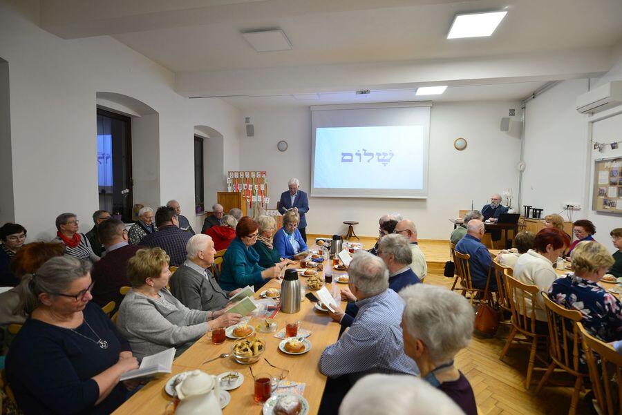 Wysłane 07 marca 2026 przez: Jan Kliber Comiesięczne spotkanie Polskiego Towarzystwa Ewangelickiego w Jaworzu odbyło się 2 marca 2026 r. i kolejny już raz w tym roku, oprócz prelekcji miało ono charakter uroczysty, bowiem swój jubileusz obchodził prezes Oddziału Józef Król, obecnie także wiceprezes w Zarządzie Głównym PTEw, a wcześniej długoletni Prezes Oddziału w Jaworzu. I z tej okazji zostały złożone mu przez członków Oddziału serdeczne życzenia. Drugą okazją był zbliżający się Dzień Kobiet i z tej okazji oprócz życzeń, nasze Panie zostały poczęstowane słodyczami, a wszyscy ciasteczkami hamantasze które piecze się z okazji święta Purim