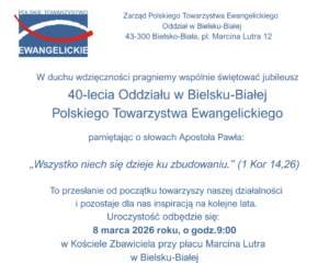 5 lutego 2026 r. na plebanii Parafii Ewangelicko-Augsburskiej w Bielsku odbyło się Zebranie Sprawozdawczo-Wyborcze Członków Oddziału Polskiego Towarzystwa Ewangelickiego w Bielsku (Bielsko-Biała).