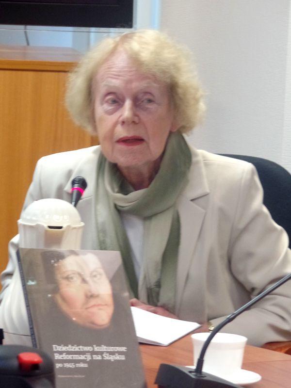 Głos zabrała także prof. Grażyna Szewczyk witając przybyłych uczestników oraz przybliżając ze swego punktu widzenia zawartość prezentowanej publikacji. Książka składa się z sześciu części, jak podkreśliła jej redaktor, podział tematyczny odzwierciedla wyobrażenia o ewangelickim dziedzictwie kulturowym, zachowanym nie tylko na Śląsku, ale także postrzeganym w ogólnym aspekcie poznawczym; publikacja ma na celu przedstawienie czytelnikom wyznaczników i wartości kultury konfesyjnej, stanowiących wartości o charakterze uniwersalnym, jak też wchodzących w skład kultury narodowej i szerzej – europejskiej. Pokonferencyjny tom rozpoczyna dwugłos ekumeniczny – spojrzenie duchownych katolickiego i ewangelickiego na wzajemne stosunki oraz relacje międzywyznaniowe kształtowane na ziemiach śląskich, zarówno w nieodległej przeszłości, jak też w kontekście jubileuszowych obchodów. W następnej kolejności uwzględnione zostały wypowiedzi dotyczące szczególnie poważanej w konfesyjnej tradycji pieśni i muzyki kościelnej, ewangelickiej sztuki i architektury przetrwałych w śląskim krajobrazie, literatury pięknej wyrastającej z podłoża konfesyjnych wartości i idei, po czasopiśmiennictwo odrodzone po 1989 roku oraz wizerunek ewangelickiego szkolnictwa kontynuującego bogate tradycje edukacyjne pielęgnowane od czasów Reformacji w środowiskach wyznawców.