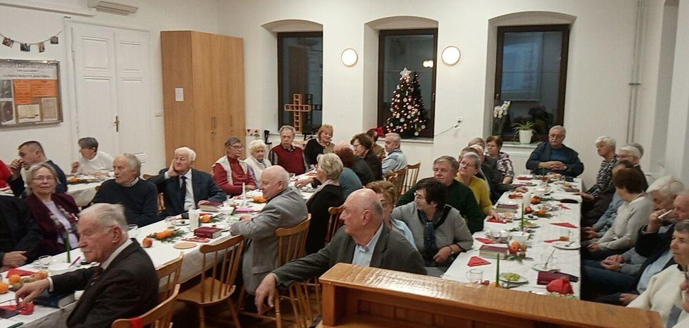 Powracając do Wieczoru Adwentowego, całość spotkania miała bogatą oprawę: były recytowane wiersze związane z Bożym Narodzeniem, które wykonali członkowie oddziału, na przystrojonych stołach umieszczono ciasta, znalazły się także potrawy wigilijne, owoce, nie zabrakło oczywiście opłatka wigilijnego i życzeń. Obejrzeliśmy fotorelację z tegorocznych wycieczek, którą przygotował Mariusz Fender. Całość przeplatana była pieśniami adwentowymi i bożonarodzeniowymi.
