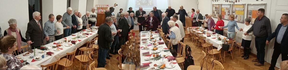 Powracając do Wieczoru Adwentowego, całość spotkania miała bogatą oprawę: były recytowane wiersze związane z Bożym Narodzeniem, które wykonali członkowie oddziału, na przystrojonych stołach umieszczono ciasta, znalazły się także potrawy wigilijne, owoce, nie zabrakło oczywiście opłatka wigilijnego i życzeń. Obejrzeliśmy fotorelację z tegorocznych wycieczek, którą przygotował Mariusz Fender. Całość przeplatana była pieśniami adwentowymi i bożonarodzeniowymi.