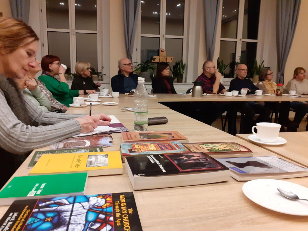 Po wykładzie tradycyjnie wywiązała się dyskusja, a pytania do prelegentki dotyczyły zaprezentowanej działalności misyjnej czy stosunku braci morawskich do spraw politycznych. Rozmowa dotyczyła także współczesnej obecności braci morawskich na świecie i ich aktywności. Prof. Szczepankiewicz-Battek zaznaczyła, że uwzględnione w prezentacjach zdjęcia są autorstwa jej męża Marka Battka (1953-2018), także współautora wspólnie wydanych publikacji.